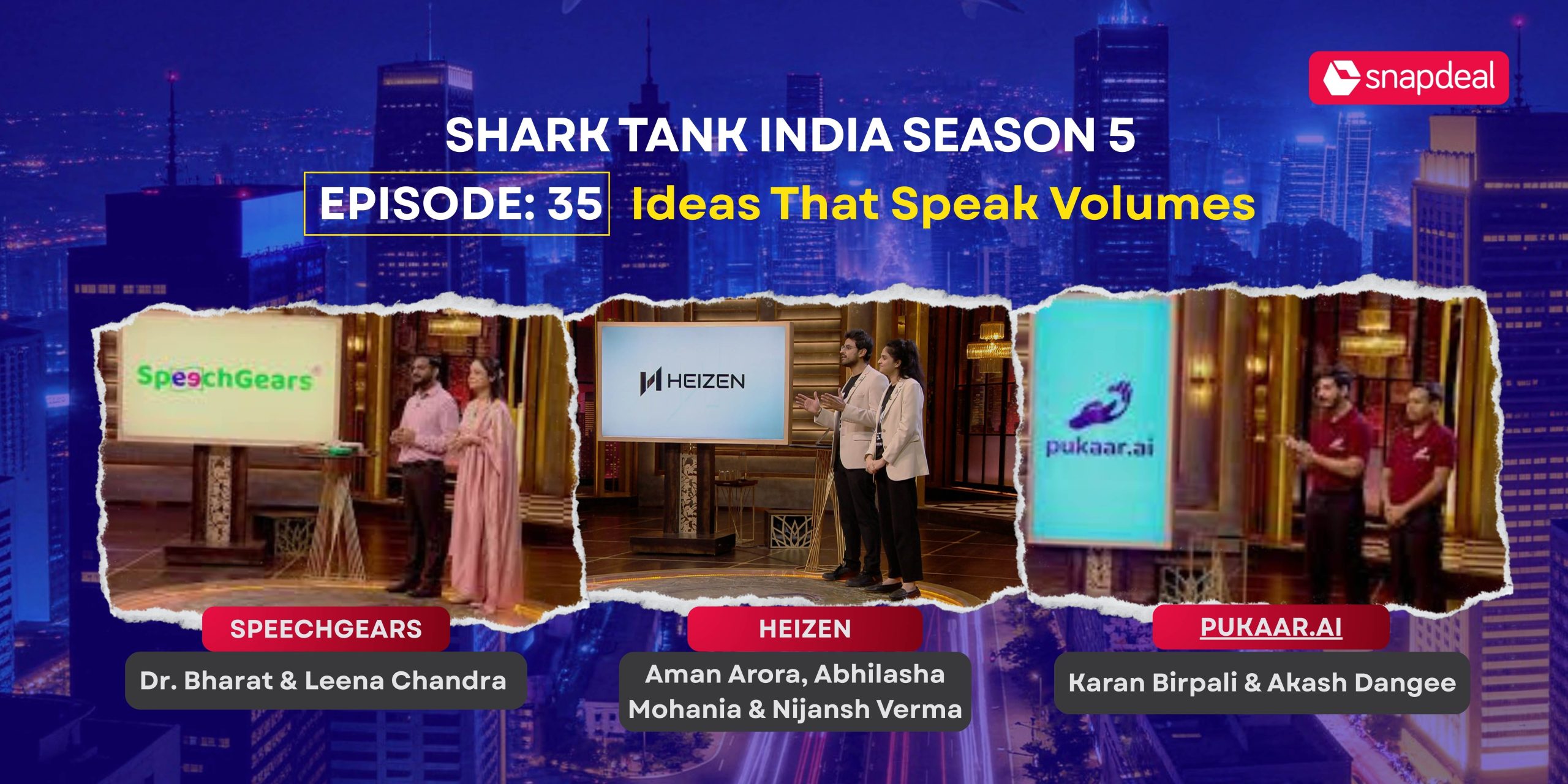SpeechGears, Heizen & Pukaar.ai were the three startups that were pitched during Shark Tank India Season 5, Episode 35.